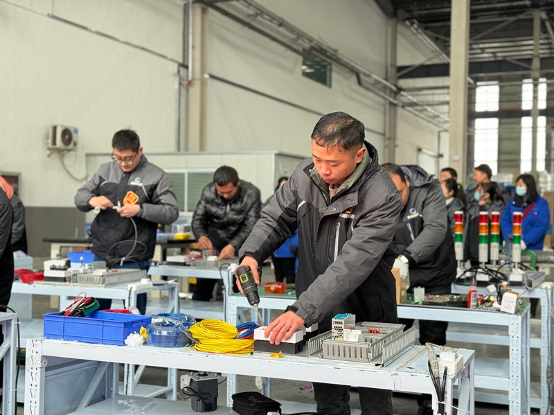 經(jīng)過激烈的角逐,楊修豪、史路路、徐平安獲得“識圖制做正反轉(zhuǎn)”冠亞季軍;肖珍貞、曹開飛、葉楠楠獲得“觸摸屏面板制作”冠亞季軍;徐平安、肖珍貞、楊修豪獲得“制作三控燈”冠亞季軍;劉帥飛、黃得立、汪洪海獲得“頂升平移裝配”冠亞季軍;帥敏獲得“同步帶線體裝配”冠軍;邵建、王安懷、覃天威獲得“取斷螺絲”冠亞季軍;王安懷、王榮財、王宏洋獲得“畫線打孔”冠亞季軍;周新志、郭青、趙鵬獲得“紅綠燈”冠亞季軍。