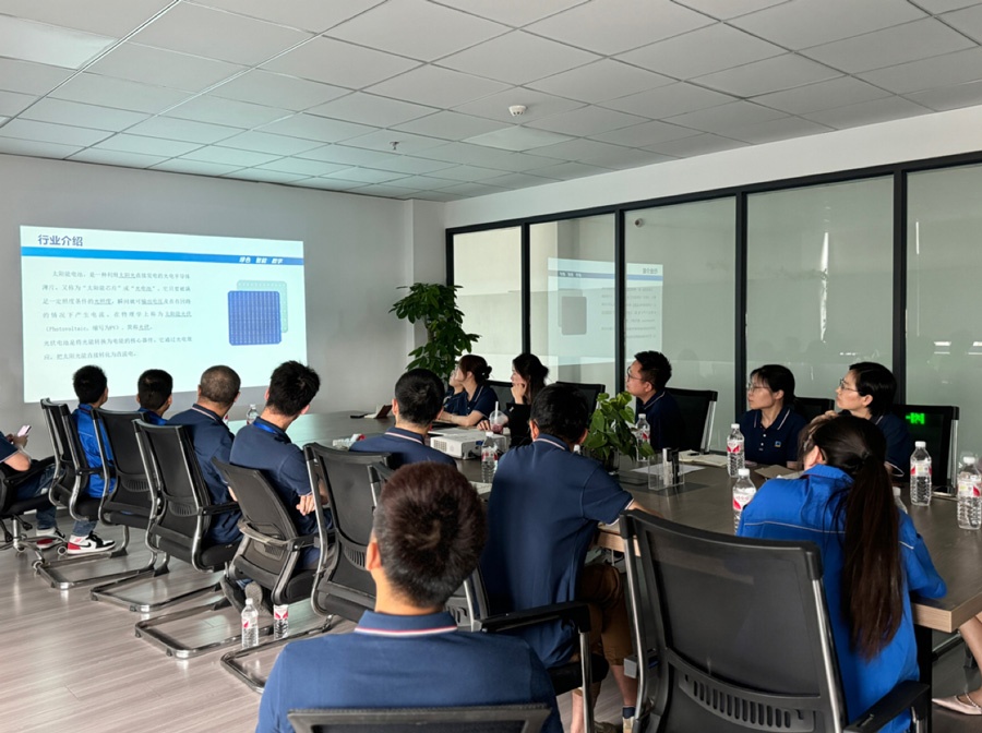 隨著光伏產(chǎn)業(yè)的蓬勃發(fā)展,為進(jìn)一步提升公司員工的業(yè)務(wù)能力和行業(yè)知識(shí)水平,公司于2024年5月21日下午在二樓會(huì)議室舉辦了一場(chǎng)光伏電池項(xiàng)目的基礎(chǔ)培訓(xùn)。本次培訓(xùn)由銷(xiāo)售中心銷(xiāo)售總監(jiān)時(shí)常樂(lè)擔(dān)任講師,旨在為公司員工提供一個(gè)學(xué)習(xí)和交流的平臺(tái)。